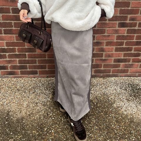 前後2wayで着用可能なリブニットスカート。 配色のセンターライン入りデザインがシンプルながらもアクセントになります◎ ウエストゴムで着脱もしやすく、スリット入りが動きやすさも抜群です! 同素材のタートルニットとSETUPでの着用も可能です。