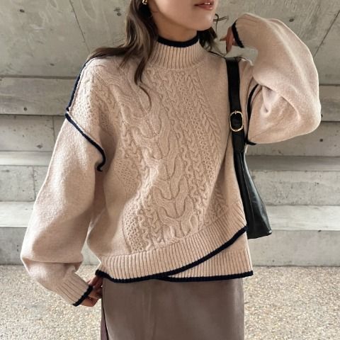 アシンメトリー×配色パイピングがコーデを格上げしてくれるおしゃれニット。