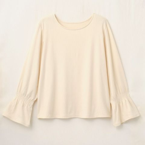 ゆったりとした身頃と袖先に向かってフレアに広がるデザインでフェミニンに着こなせるトツプス。
