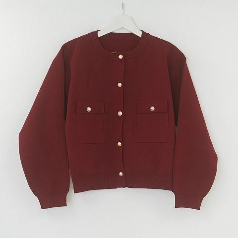 前ポケットが特徴的な釦カーデ。