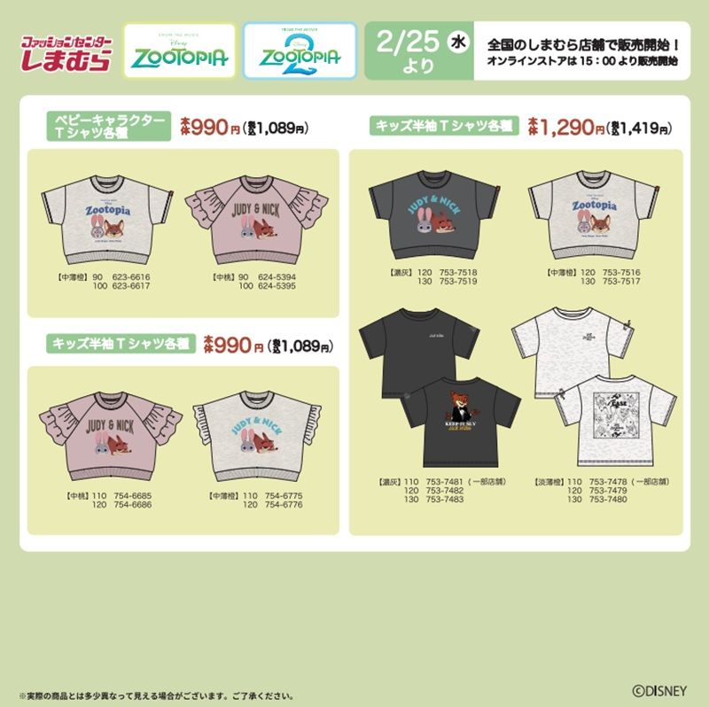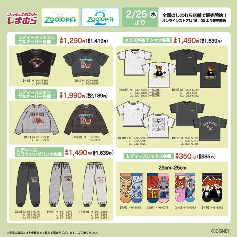 2/25(水)全国のしまむらとオンラインストアにてズートピアの商品が販売開始!