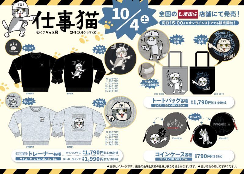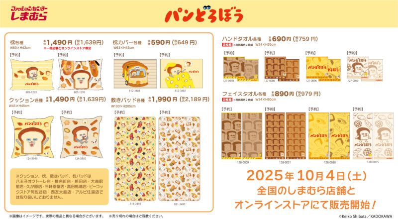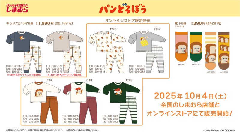 しまむらでは、2025年10月4日(土)~パンどろぼう、仕事猫などのコラボを販売します!