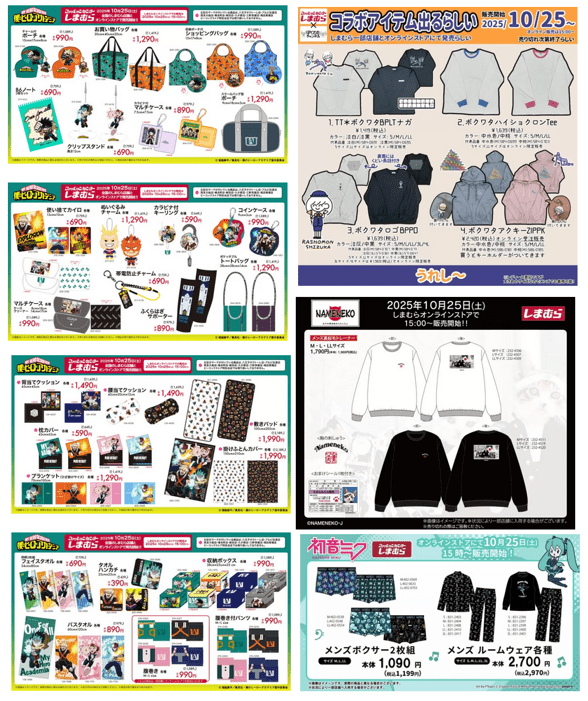 2025年10月25日(土)より新発売『しまむら』コラボまとめ!ヒロアカ、ぼくわたチャンネル、なめ猫、初音ミクなども!