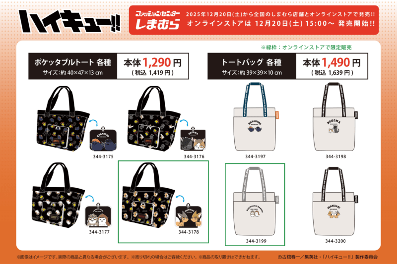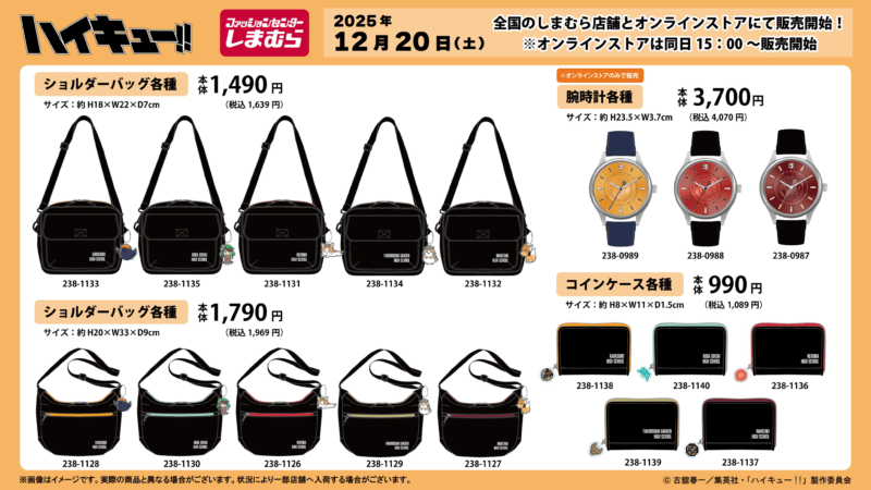 しまむらでは、2025年12月20日(土)~ハイキュー、カイジ、ハッピーバッグ(福袋)などのコラボを販売します!