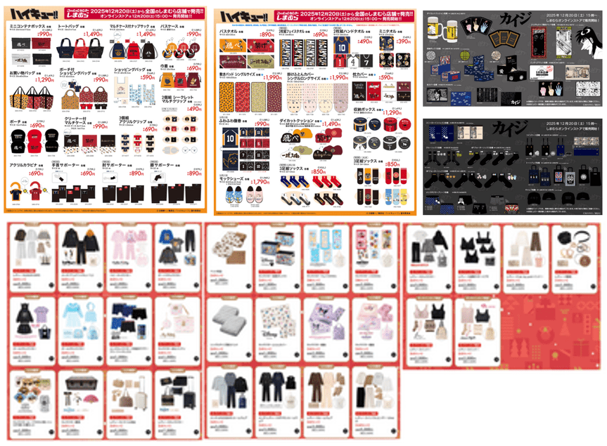 2025年12月20日(土)より新発売『しまむら』コラボまとめ!ハイキュー、カイジ、ハッピーバッグ(福袋)なども!