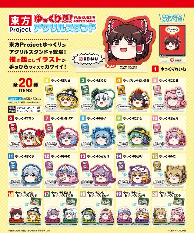 東方プロジェクト ゆっくりアクリルスタンド ラインナップは全20種類