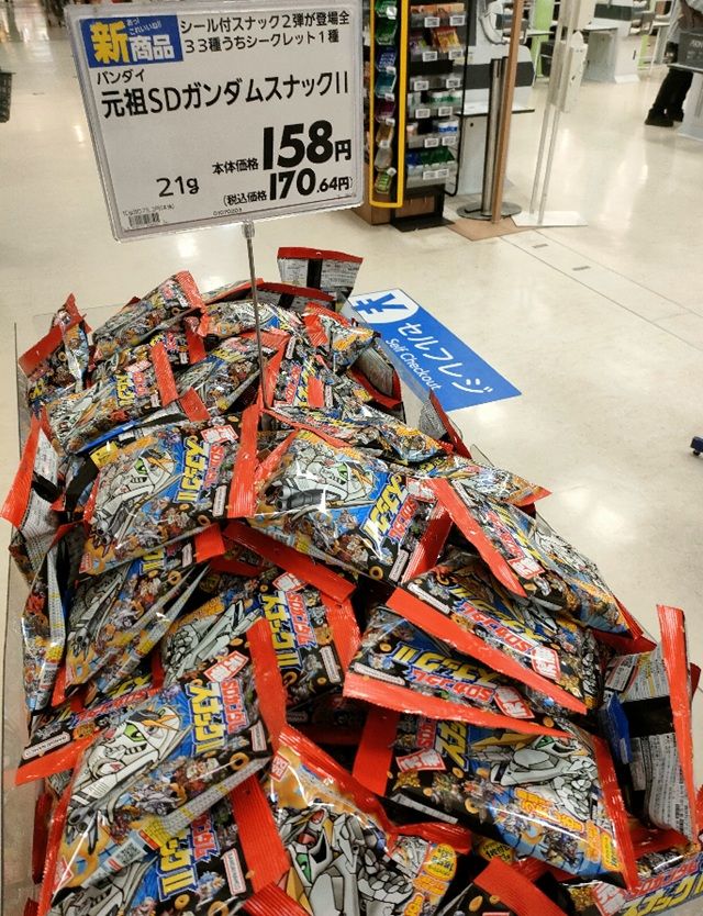 元祖SDガンダムスナックⅡを探しに近場のセブンとファミマ見たけど置いてなかった。