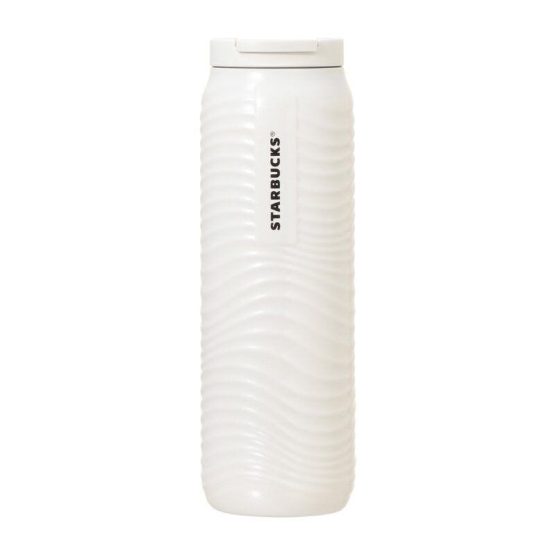 ボディには緩やかなカーブラインが特徴の凹凸が施されています。パールホワイトがとてもピュアな印象で、缶を思わせる形状も特徴的です。真空二重構造ステンレスで保温・保冷性に優れています。(漏れ防止:あり)