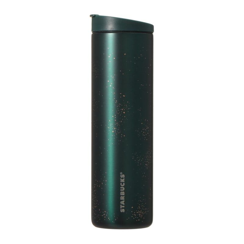 繊細なゴールドグリッターの輝きをまとったステンレスボトルです。控えめながら上品に光を放ち、スタイリッシュな印象です。STARBUCKSのロゴがレーザー加工で表現されています。真空二重構造ステンレスで保温・保冷性に優れています。(漏れ防止:あり)