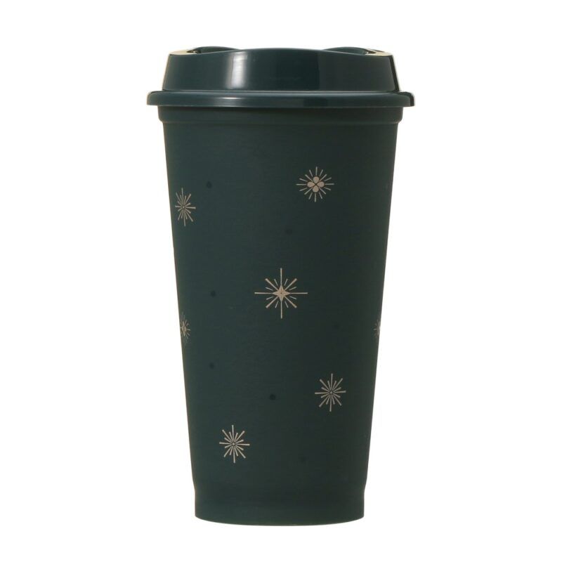 ホリデーらしいグリーンとゴールドのリユーザブルカップ