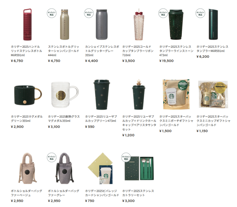ボトルやタンブラーなどオンライン限定商品は争奪戦になると思います。