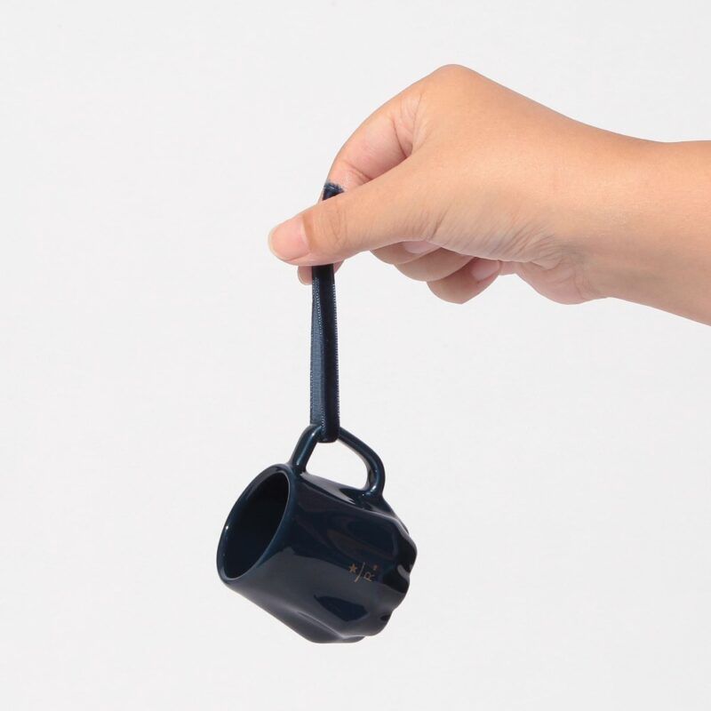 ホリデーコレクションとして登場するネイビーのドレープマグと同じデザインの磁器製オーナメント。ツリーのオーナメントとしてはもちろん、インテリアとしてもホリデー気分を盛り上げてくれます。