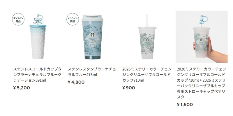 スタバ『春のプロモーション2026年』グッズまとめ!リボンやクマのナチュラルブルー、コールドカップ、スタイリッシュなボトル、マグカップもラインナップ!オンライン先行販売後に店頭販売!