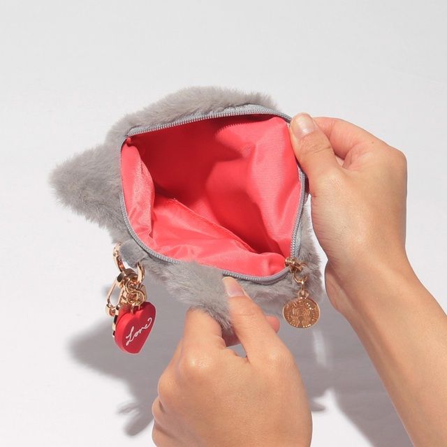 猫の顔がそのままデザインされたファーポーチ