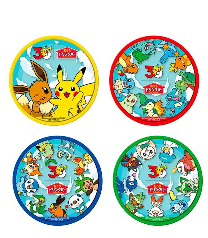 オリジナルのラバーコースターは、歴代の『ポケットモンスター』シリーズに登場した“旅立ちの3匹”が描かれたデザインと、ピカチュウとイーブイが描かれたデザインの全4種がランダムでセットされています。