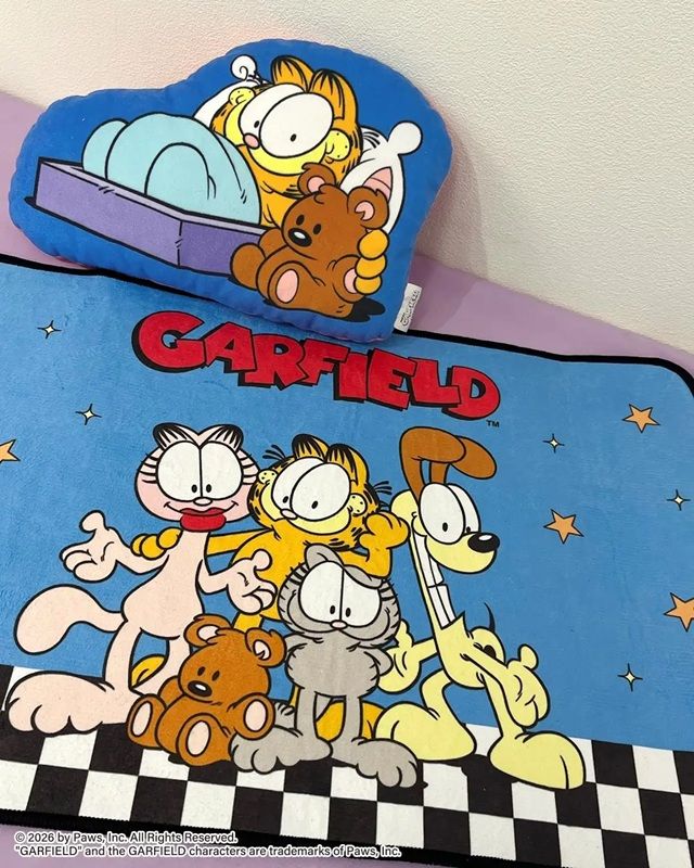 「クッション」は「ガーフィールド」のキュートなデザインが目を引き、置くだけで空間をポップな雰囲気に彩ります。