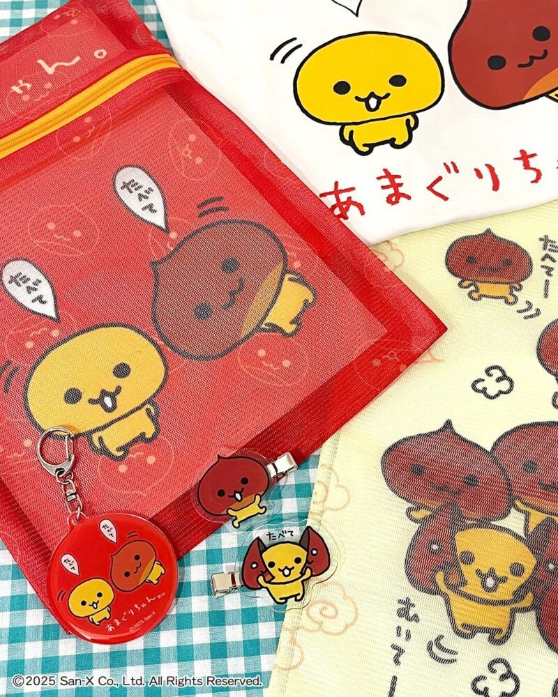 あまぐりをモチーフにした形がかわいい「ダイカットポーチ」や、ステーショナリーグッズの「フレークステッカー」や「アクリルスタンドクリップ」など、日常使いからコレクションまで楽しめるアイテムを幅広くラインナップしています。