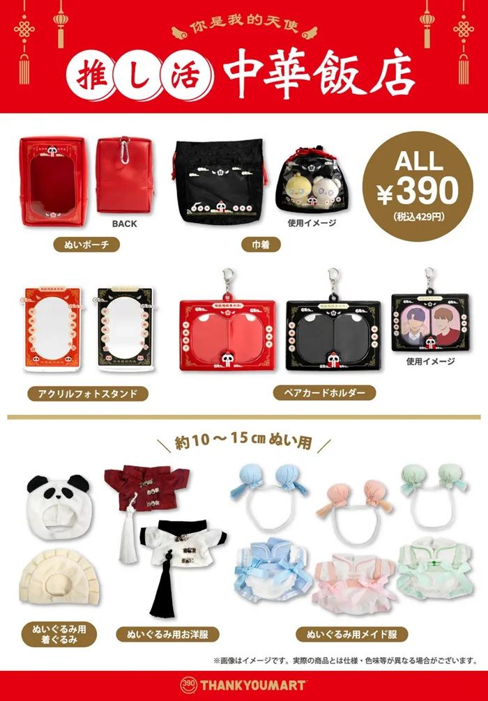 サンキューマートの推し活の新シリーズでは、「中華飯店」をテーマとした推し活アイテムを展開します。推し“ぬい”などのグッズを中華風にコーディネートでき、写真撮影やお出かけをより楽しめるラインナップです。