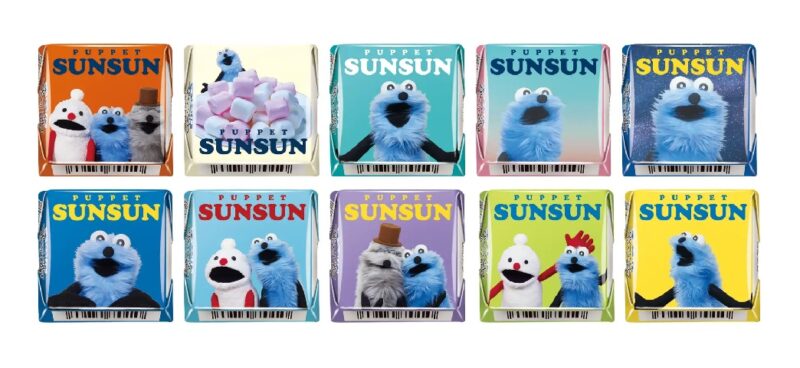 6才のパペットの男の子・スンスンの何気ない日常を描いた作品「パペットスンスン」とチロルチョコがコラボ!ついつい集めたくなるカラフルで可愛いデザインは全10種類!フレーバーはさわやかなブルーベリーマシュマロ味♪