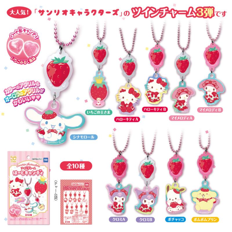 サンリオキャラクターズ ツインチャーム はーとキャンディ(いちご新聞の50周年記念) ラインナップは全10種。