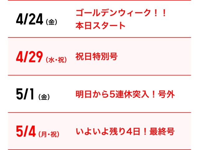- 4月29日(水・祝)~