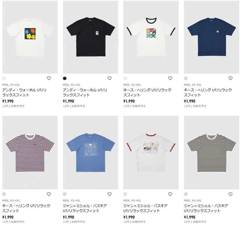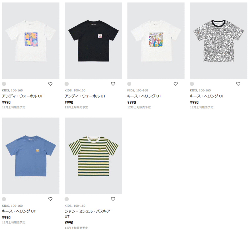 アンディ・ウォーホル、キース・へリング、ジャン=ミシェル・バスキアの半袖Tシャツがラインナップ!メンズ、キッズのサイズで展開します。