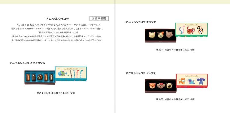 アニマルショコラは阪急・阪神百貨店、髙島屋限定商品です。
