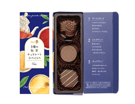 アールグレイ、ミルクティー、チャイティーの3種の紅茶チョコレートたべくらべ。