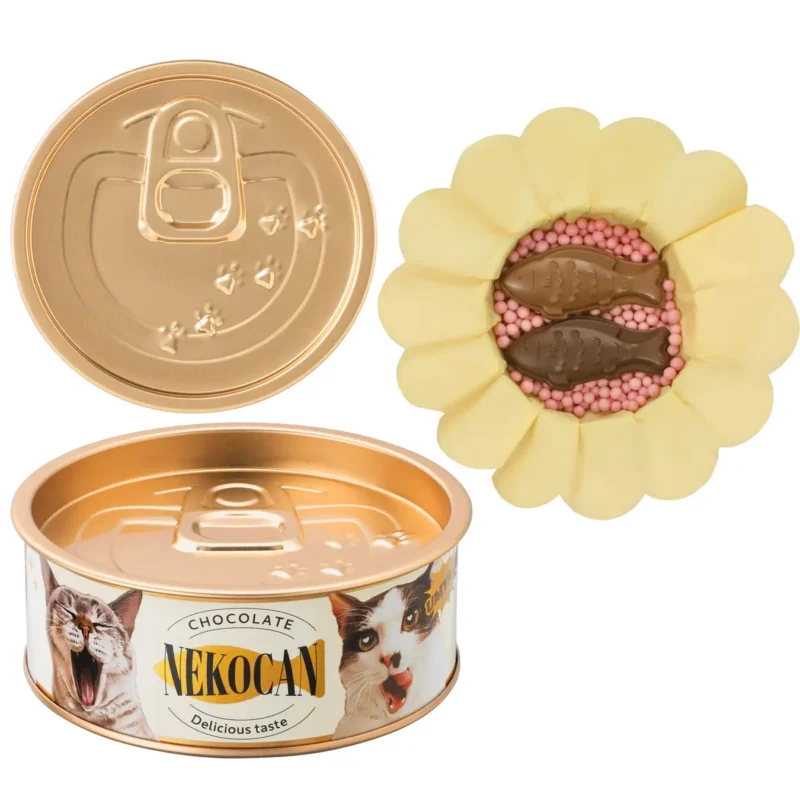 遊び心満載の猫缶をモチーフにした缶に、魚型のチョコレートが入ってるにゃ!