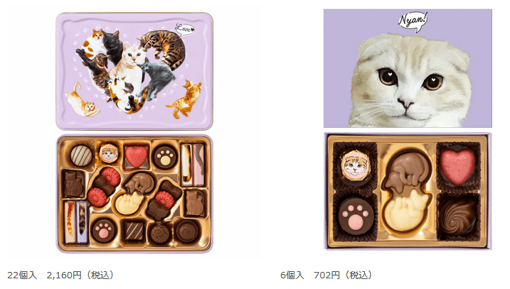 猫や肉球などをモチーフにした可愛らしいチョコレートアソート。
