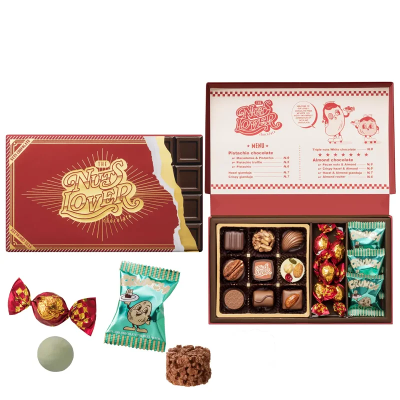 #2026年バレンタイン 限定商品「NUTS LOVER(#ナッツラバー)」をご紹介🙌#ナッツ × #チョコレート はまさに黄金のコンビ❣#アーモンド や #ペカンナッツ などのナッツ🥰を組み合わせた様々な食感のチョコレートと、〈#アメリカンレトロ〉の世界観⭐