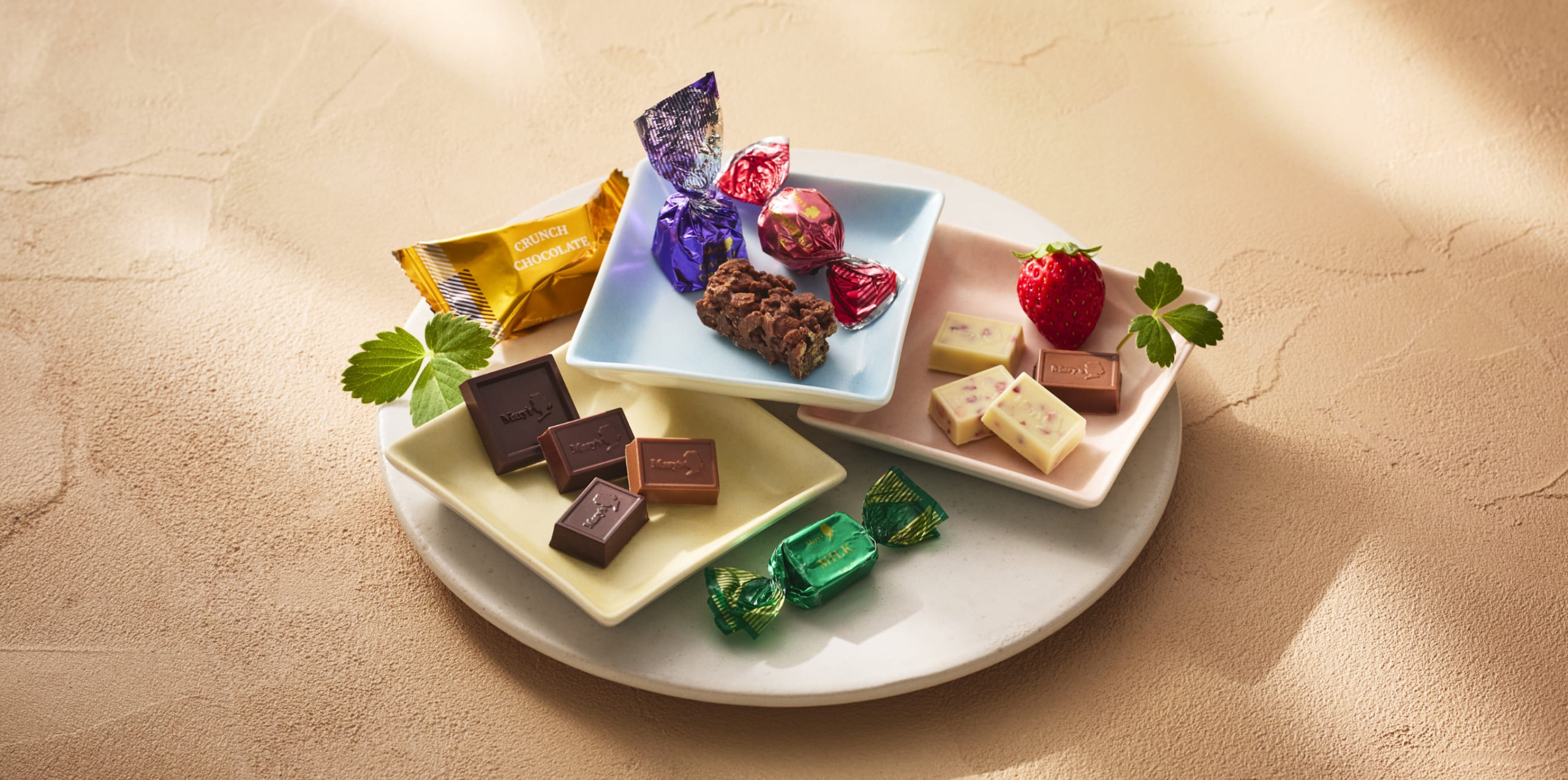 プレーンチョコレートやチョコレートクッキーなど、いろいろなチョコレート菓子をお楽しみいただけます。