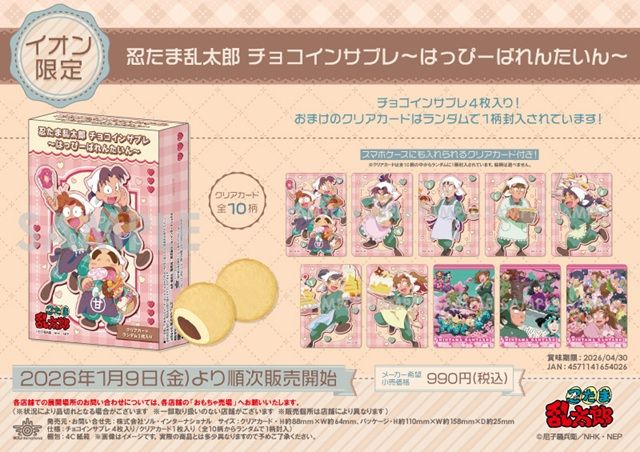 【イオン限定】忍たま乱太郎 チョコインサブレ~はっぴーばれんたいん~ 価格:990円(税込)