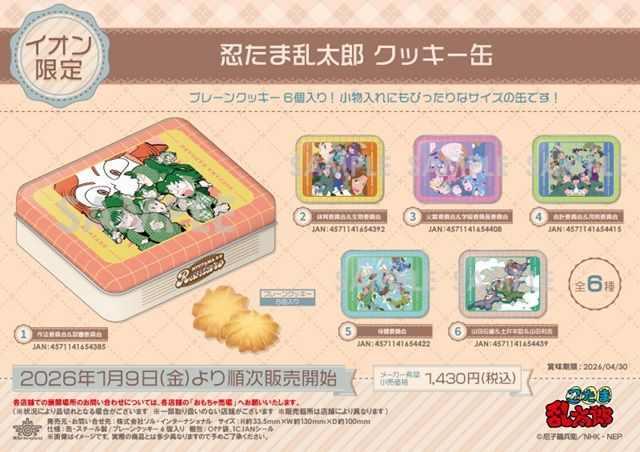 【イオン限定】忍たま乱太郎 クッキー缶 価格:1,430円(税込)