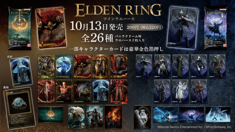 『ELDEN RING』と『ELDEN RING NIGHTREIGN』のキャラクターや世界観が、手元で楽しめる美麗カード付ツインウエハースとなって登場。