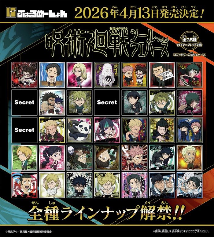 にふぉるめーしょん 呪術廻戦シールウエハースvol.4(第4弾)シールのラインナップは全35種類/うちシークレット3種類