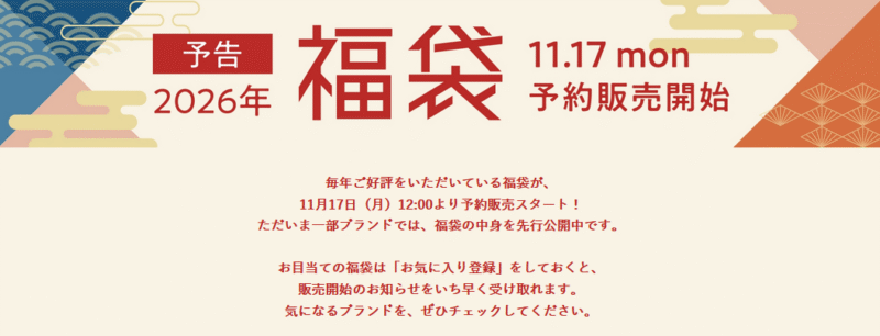 2026年は約11種類の福袋が先行予約で販売します!