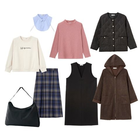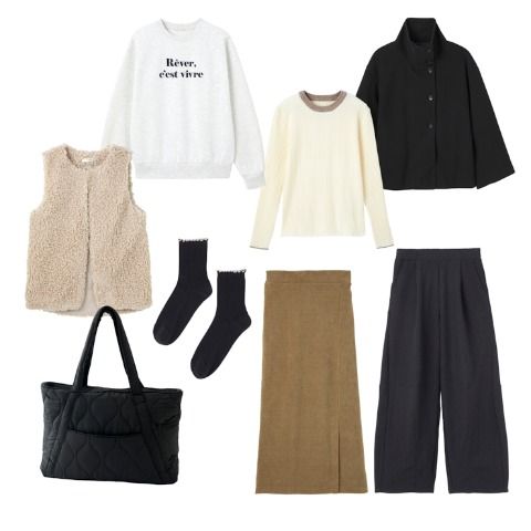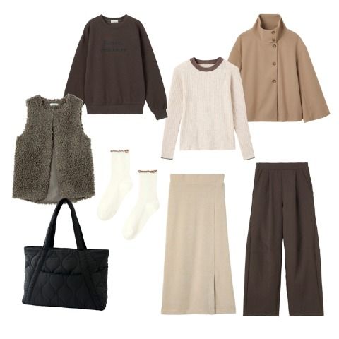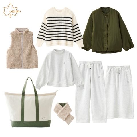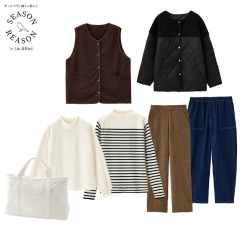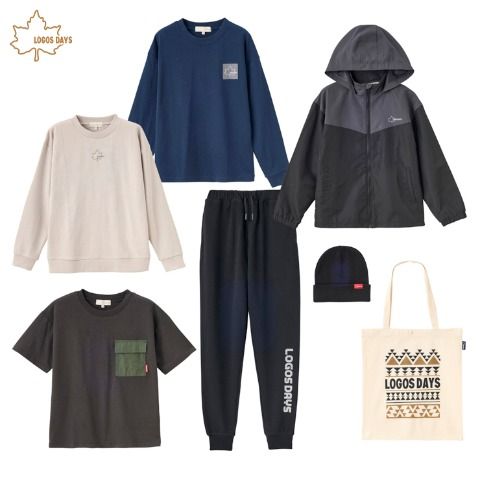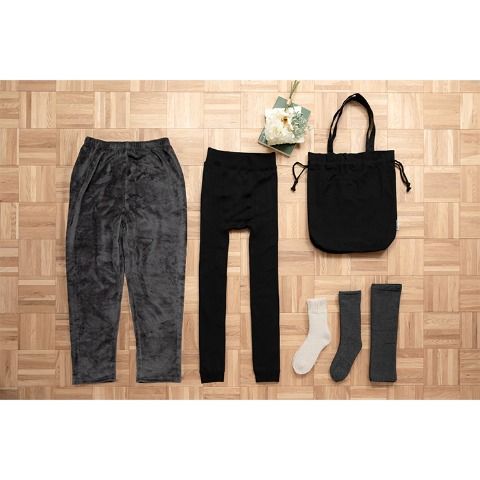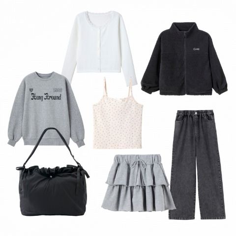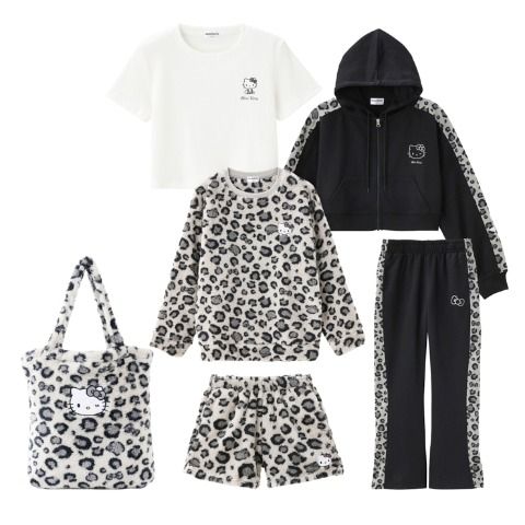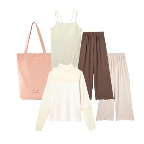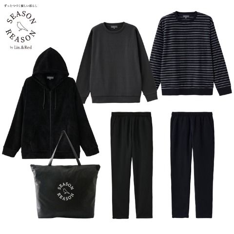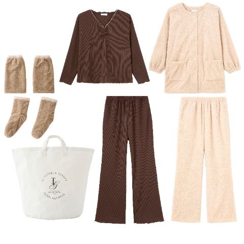 ダンボールパーカ&フレアパンツ、ボアフリースプルオーバー&ショートパンツ、テレコリブTシャツ、ボアフリーストートバッグの豪華6点セットです。