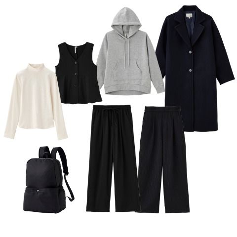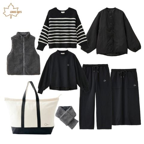 ボアジャケット、中綿ベスト、裏起毛トレーナー、フリース長袖Tシャツ、リップストップパンツをトレンドの感のあるリュックサックに詰め込んだお得なセットです。全アイテム、ブラックを基調としたどのようなシチュエーションにもばっちりなアイテムばかりです。