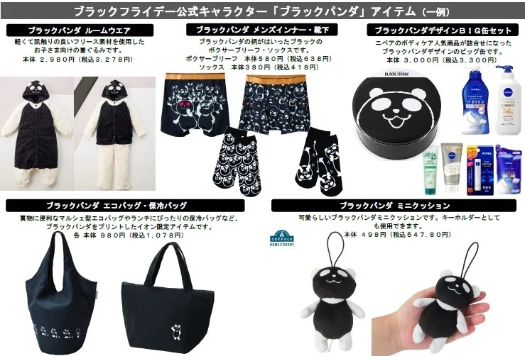 ブラックフライデー公式キャラクター「ブラックパンダ」アイテム(一例)