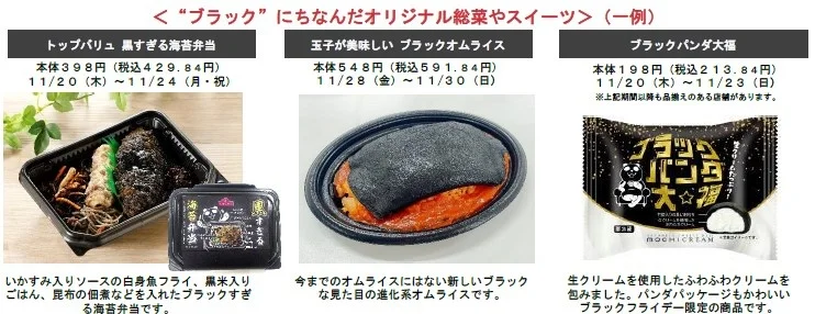 <“ブラック”にちなんだオリジナル総菜やスイーツ(一例)