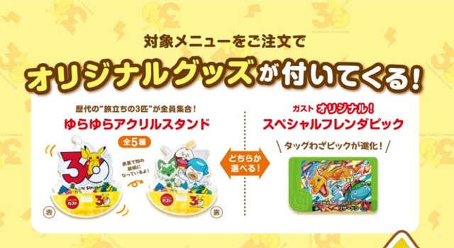 - お子様メニュー「ラッキーセット」についてくるカプセルトイが“ポケモン”グッズに変更(ガスト/バーミヤン/ジョナサン/しゃぶ葉/夢庵/ステーキガストで実施)