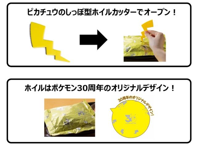 30周年記念デザインのホイルを、ピカチュウの「しっぽ型ホイルカッター」で切り開く体験型メニューです。