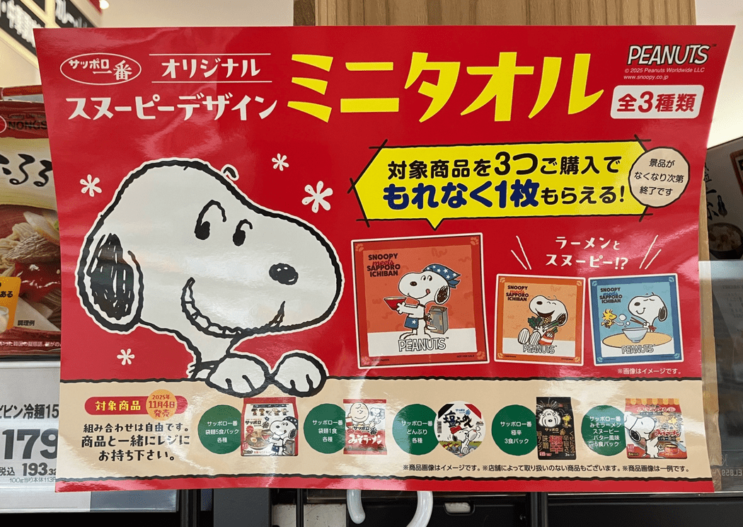サッポロ一番『スヌーピー』コラボ!ミニタオルのおまけが店頭でもらえるキャンペーンを2025年11月より開催!