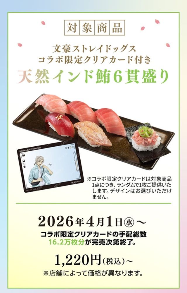 商品名:文豪ストレイドッグスコラボ限定クリアカード付き 天然インド鮪6貫盛り