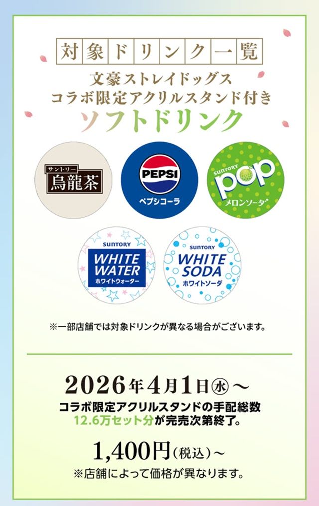 商品名:文豪ストレイドッグスコラボ限定アクリルスタンド付き ソフトドリンク