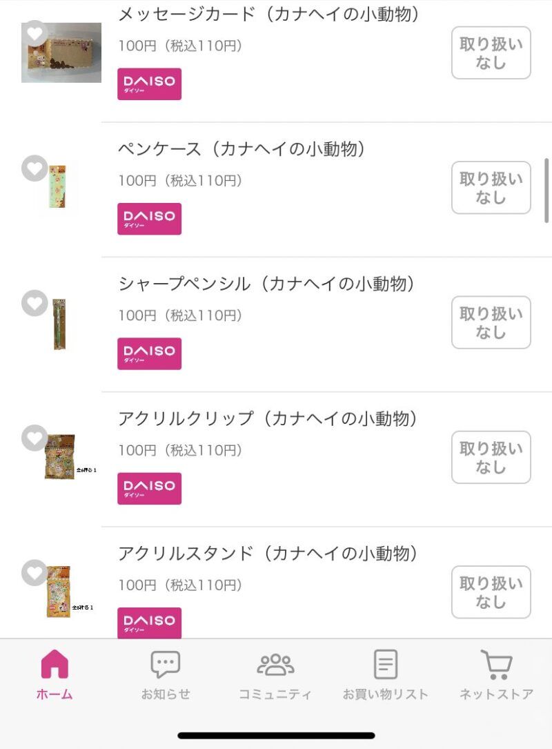 最寄りのダイソーで一部のカナヘイグッズをようやく発見しました!