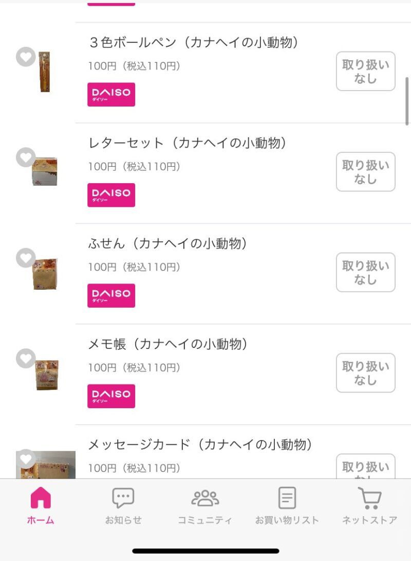 ボールペンは近場には扱い店舗なく撃沈。#推し活#カナヘイ#DAISO pic.twitter.com/HNFypeh7nZ
