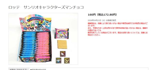 - サンリオキャラクターズ マンチョコ 160円*(税込172.80円)