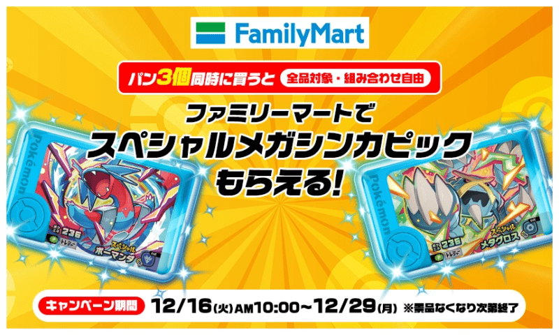 | 2025年12月16日(火) | メガボーマンダ、メガメタグロスのファミリーマートスペシャルフレンダピック | |